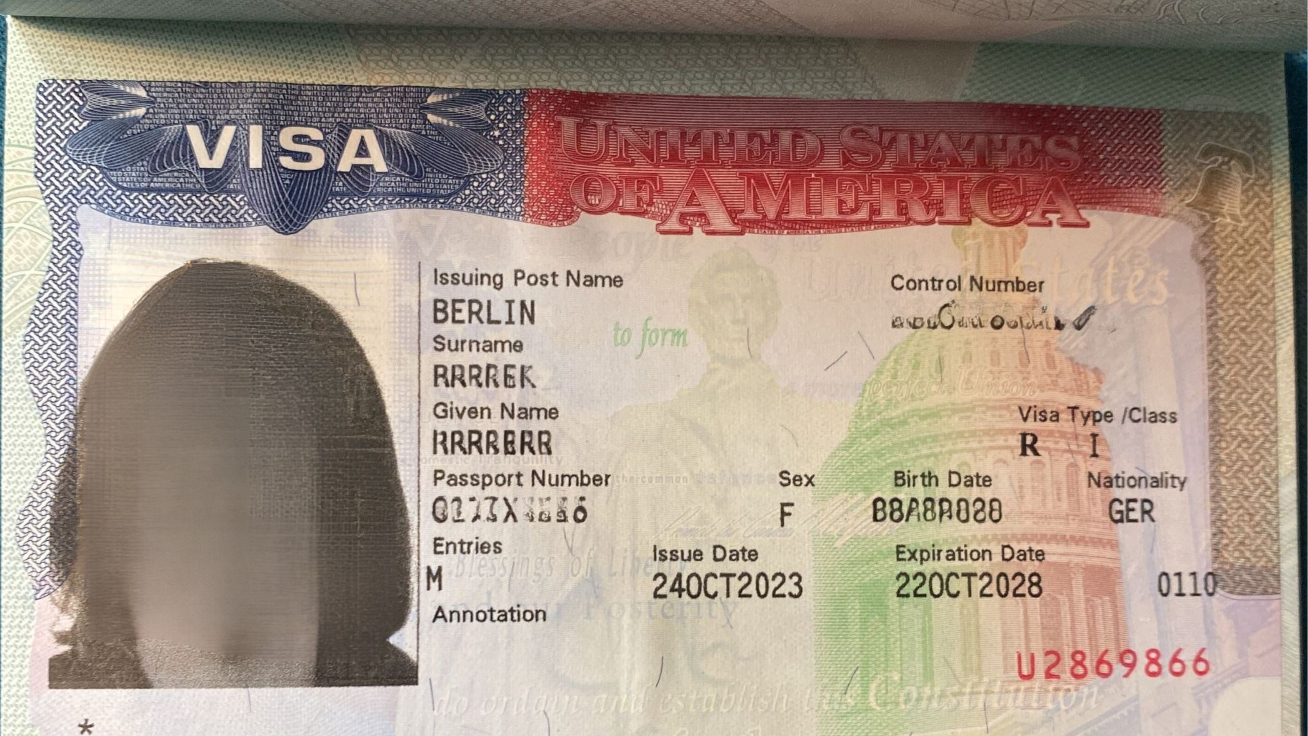 Folgende der Daten und Angaben sind unter anderem auf einem US-Visum zu finden:
